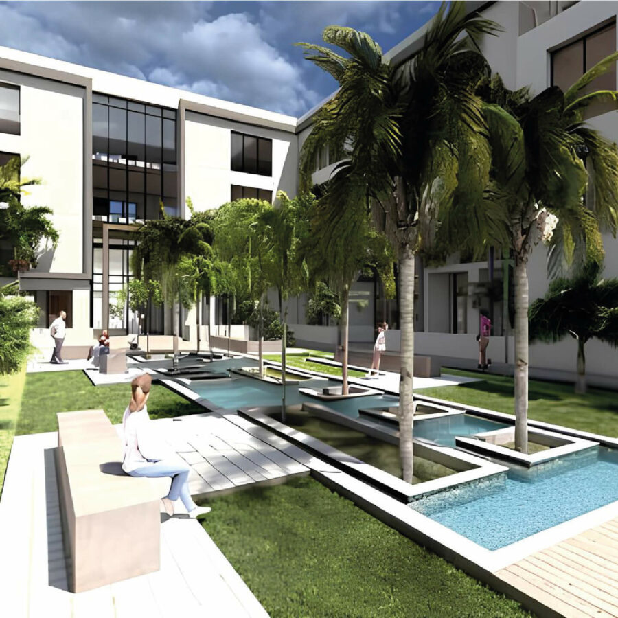 Depuis l’accès principal, l’élève emprunte un cheminement structurant, inscrit dans l’axe de la cour principale (forum). Cet axe mène directement aux espaces d’enseignement et permet une orientation claire vers les différentes entités du campus, telles que la bibliothèque, l’administration, le foyer et l’amphithéâtre.