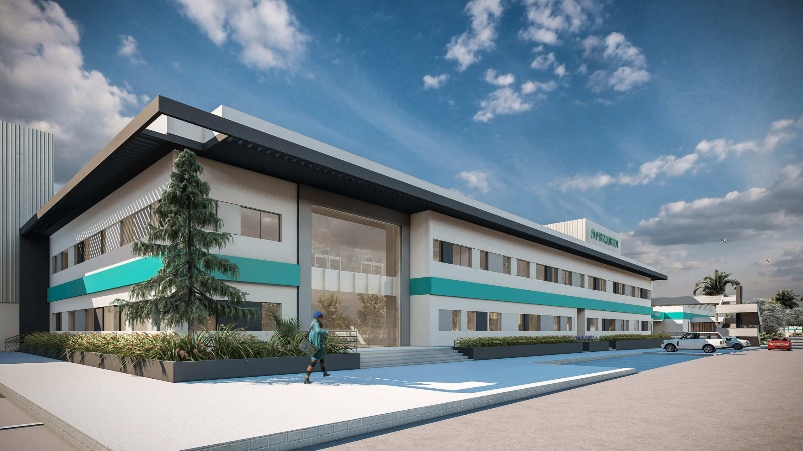 Les volumes administratifs et de services sont intégrés de manière cohérente au corps principal de l’usine, avec une échelle plus lisible et une écriture architecturale plus expressive. L’ensemble du projet traduit une architecture industrielle efficiente, durable et contemporaine, conciliant exigences techniques, qualité spatiale et intégration harmonieuse dans le site d’El Fajja.